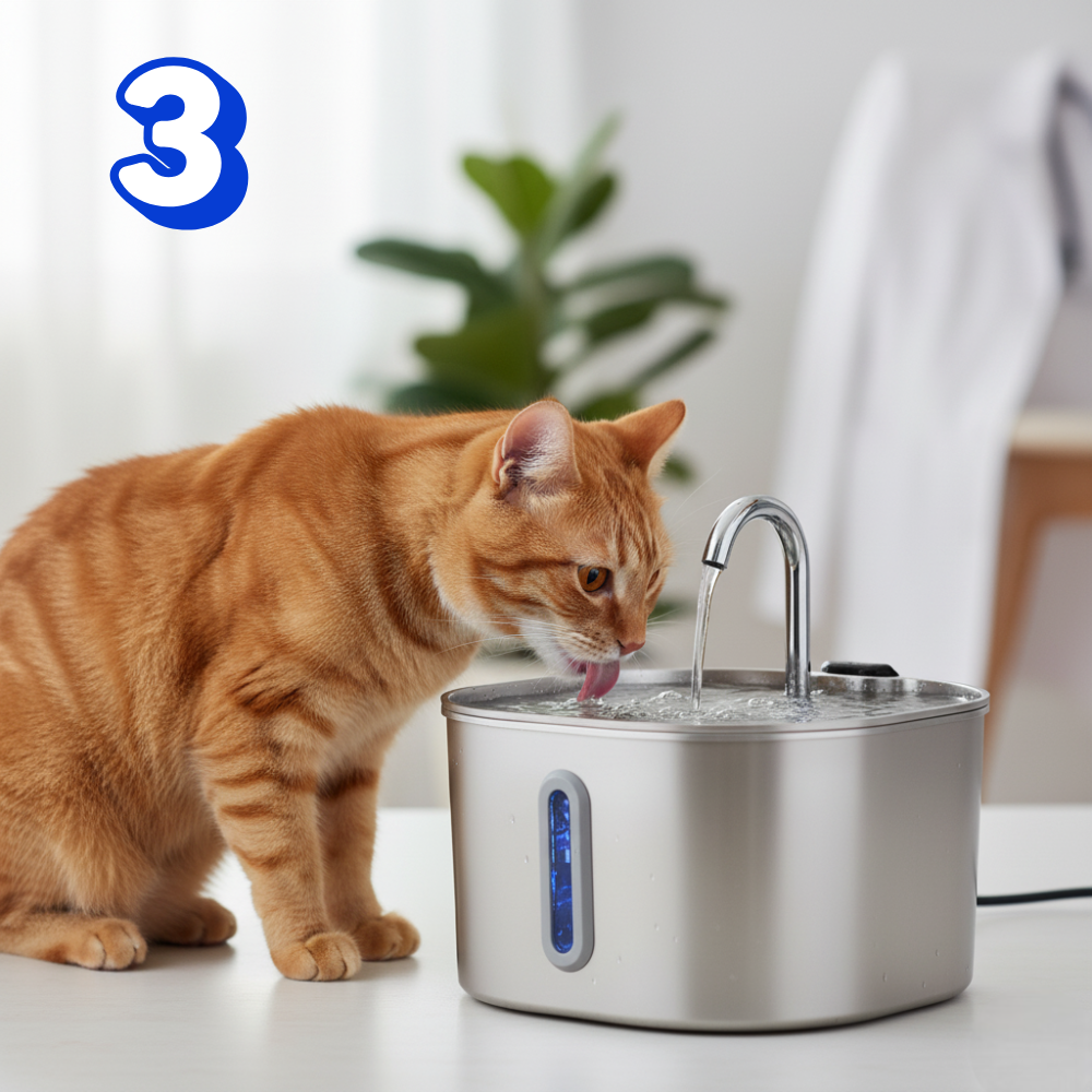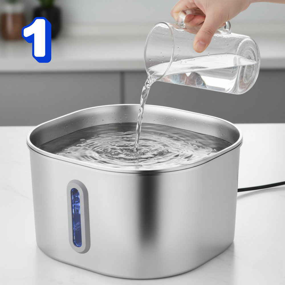 L’indicatore luminoso ti avvisa quando il livello scende, così il tuo gatto non resta mai senza acqua fresca. Ideale anche di notte grazie alla luce soffusa che guida il gatto in sicurezza.
